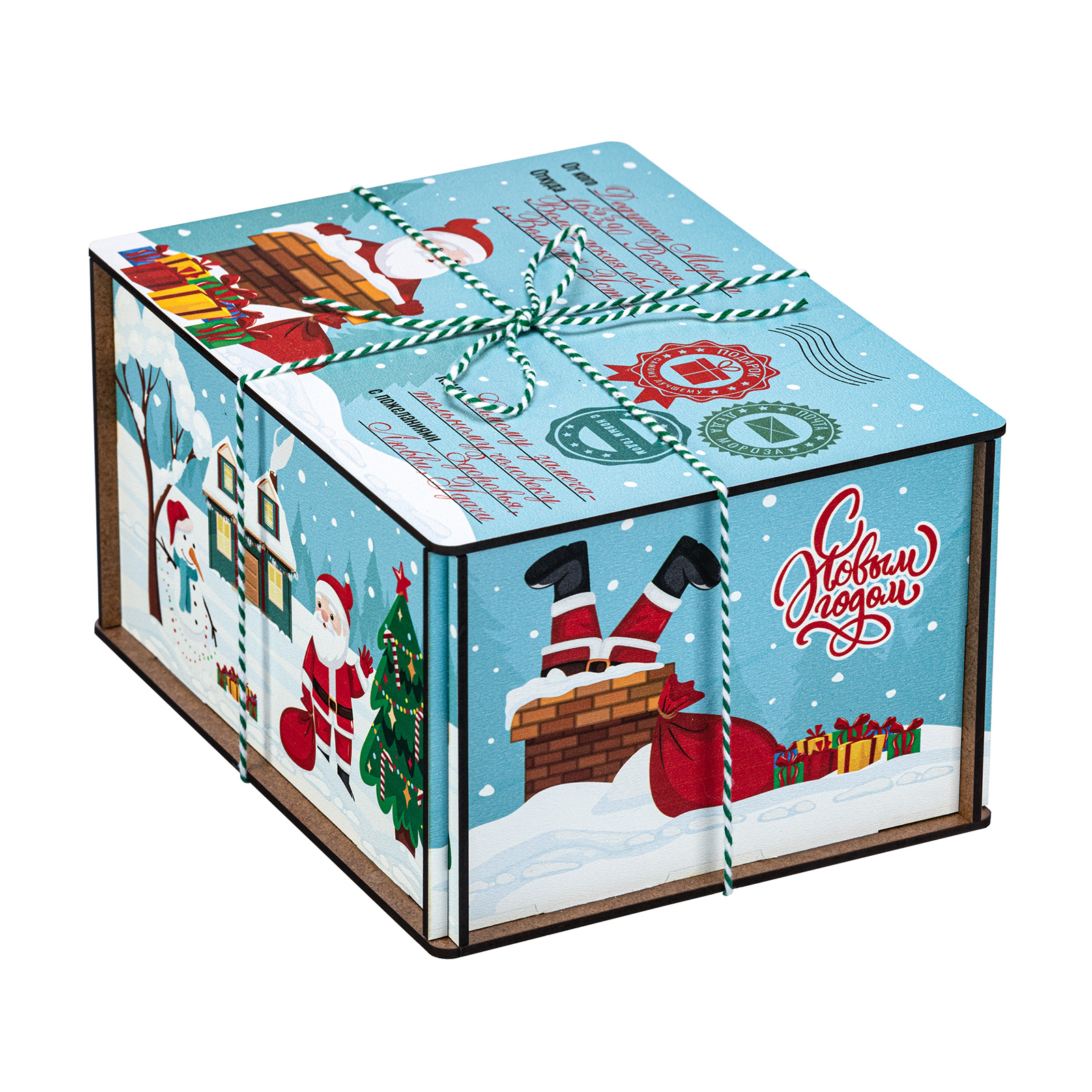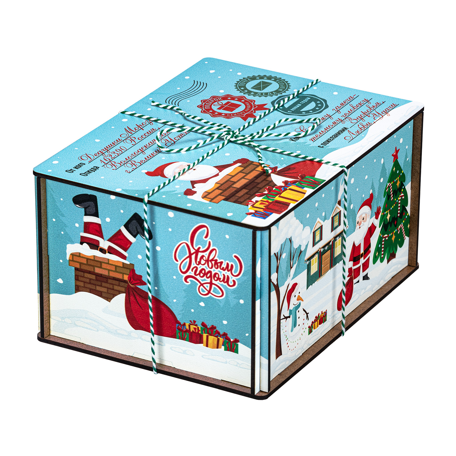 Новогодние сладкие подарки в деревянных упаковках уже не первый год пользуются высоким спросом у покупателей. Это не просто так - такие подаркаи отличаются оригинальностью и практичностью. Набор “Мятная ночь” не исключение. Это небольшая деревянная коробочка с виду напоминающая бандероль. Упаковка отличается необычным приятным цветом, который прекрасно сочетается  с разннобразными новогодними рисунками, помещенными со всех сторон. Сверху подарок перетянут удобной ручкой-шнурком. Набор состоит из килограмма разнообразных кондитерских изделий и небольшой памятный сувенир в виде лошадки - символа 2026 года.